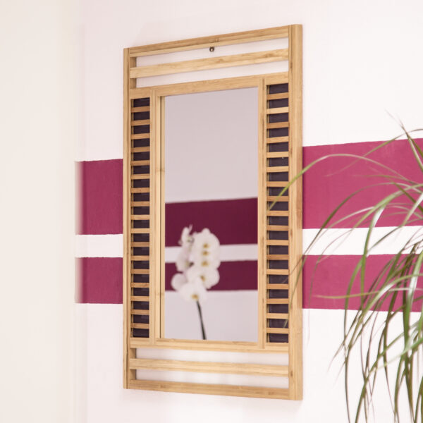 Veidrodis yra ypač naudingas vonios kambaryje, kur patvarus bambukas užtikrina ilgaamžiškumą ir atsparumą drėgmei. Pasirinkite šį veidrodį ir suteikite savo namams išskirtinį stiliaus akcentą.