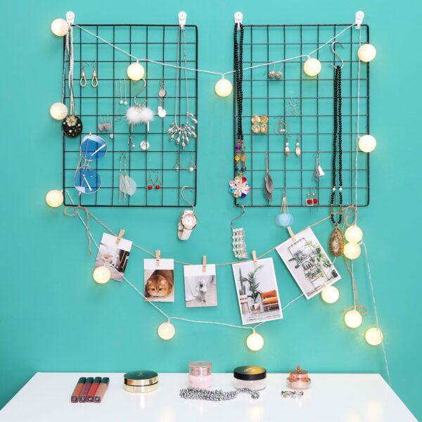 Būkite kūrybingi! Daugumai žmonių tinklelio plokštės neatrodo ypač gražios ir atrodo kaip objektas be jokio tikslo. Tačiau menininkui už grotų atsiveria pasakiška galimybė kurti ir paversti jį unikaliu meno kūriniu pasitelkus paveikslėlius, dekoracijas, pasakų lemputes ar atvirukus. Su SONGMICS suraskite savo vidinį menininką ir suprojektuokite šias nuostabias grotelių sienas, kad tiktų jūsų sąvokoms!