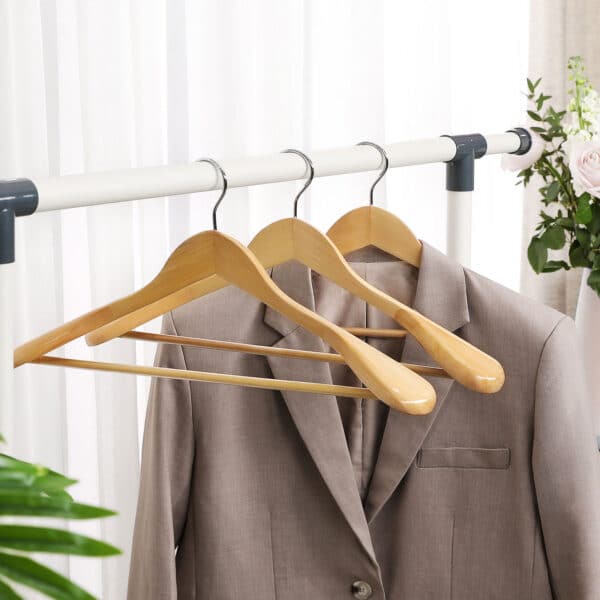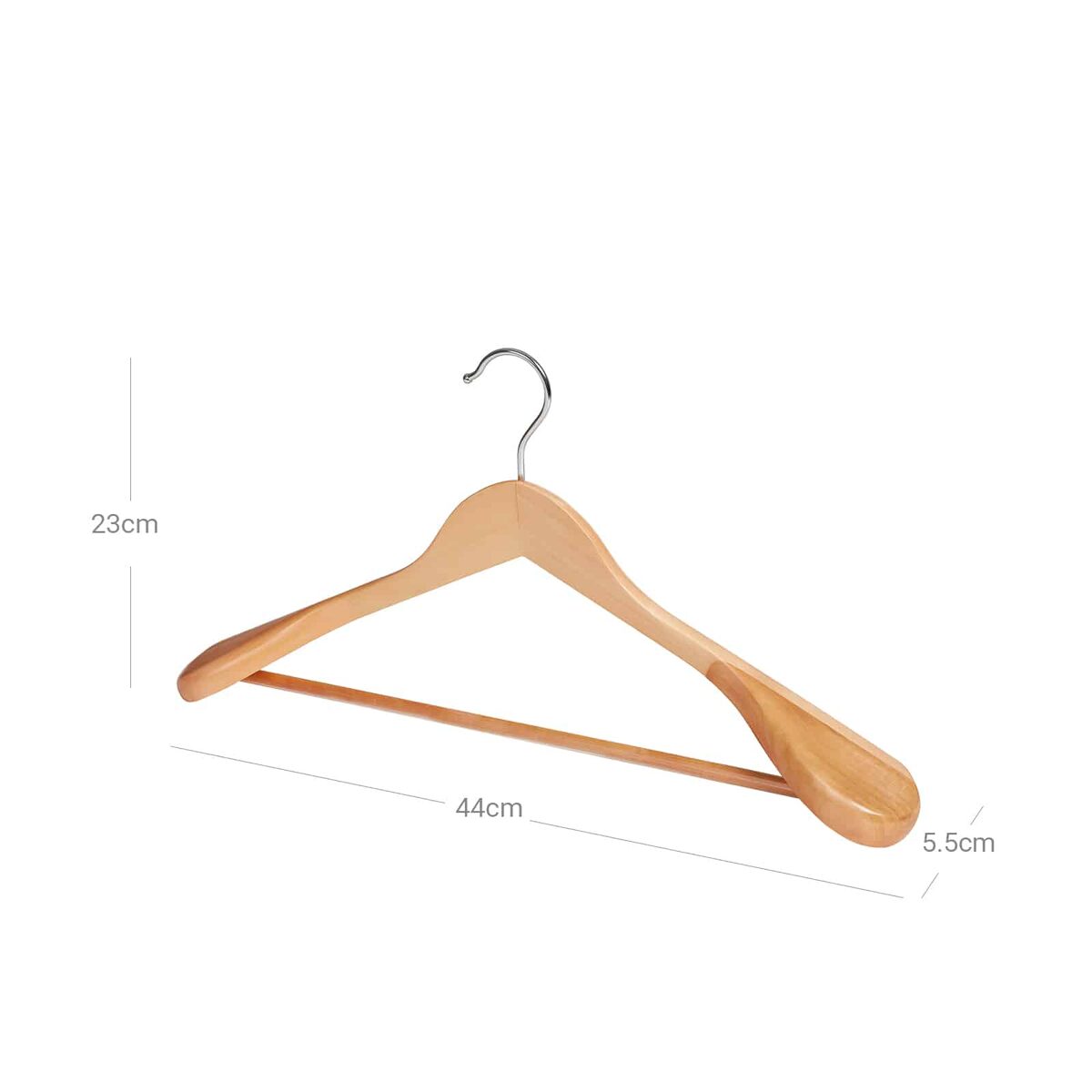 Reikia įsigyti naują kostiumą, nes paskutinis prarado formą dėl netinkamo laikymo? Su šiomis SONGMICS kostiumo pakabomis tai nepasikartos. Dėl ergonomiškų išlenkimų ir plačių pečių ant šios pakabos galėsite tvarkingai pakabinti kostiumus. Šios medžio masyvo pakabos turi maloniai lygų paviršių, kuris buvo kruopščiai poliruotas ir lakuotas. Jos taip pat pasižymi tvirtumu ir ilgu tarnavimo laiku. Praktiškas kasdienis pagalbininkas kokybiškiems kostiumams laikyti.
