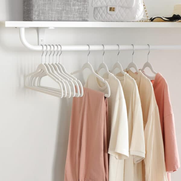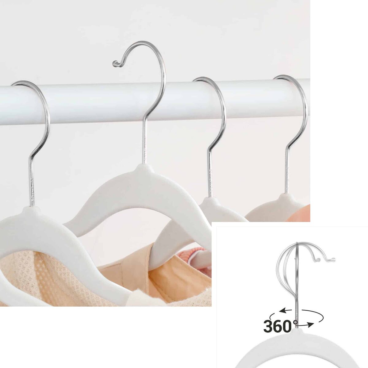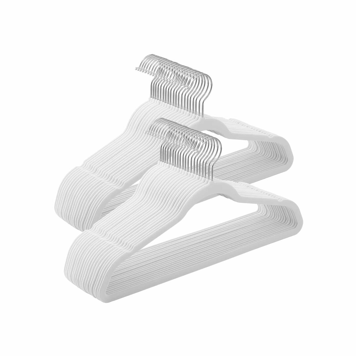 Šis 50 vnt. baltos spalvos pakabų rinkinys yra puikus pasirinkimas jūsų drabužių spintai. Pagamintos iš aukštos kokybės ABS plastiko, aksomo ir metalinio kabliuko, šios pakabos yra tvirtos ir ilgaamžės.