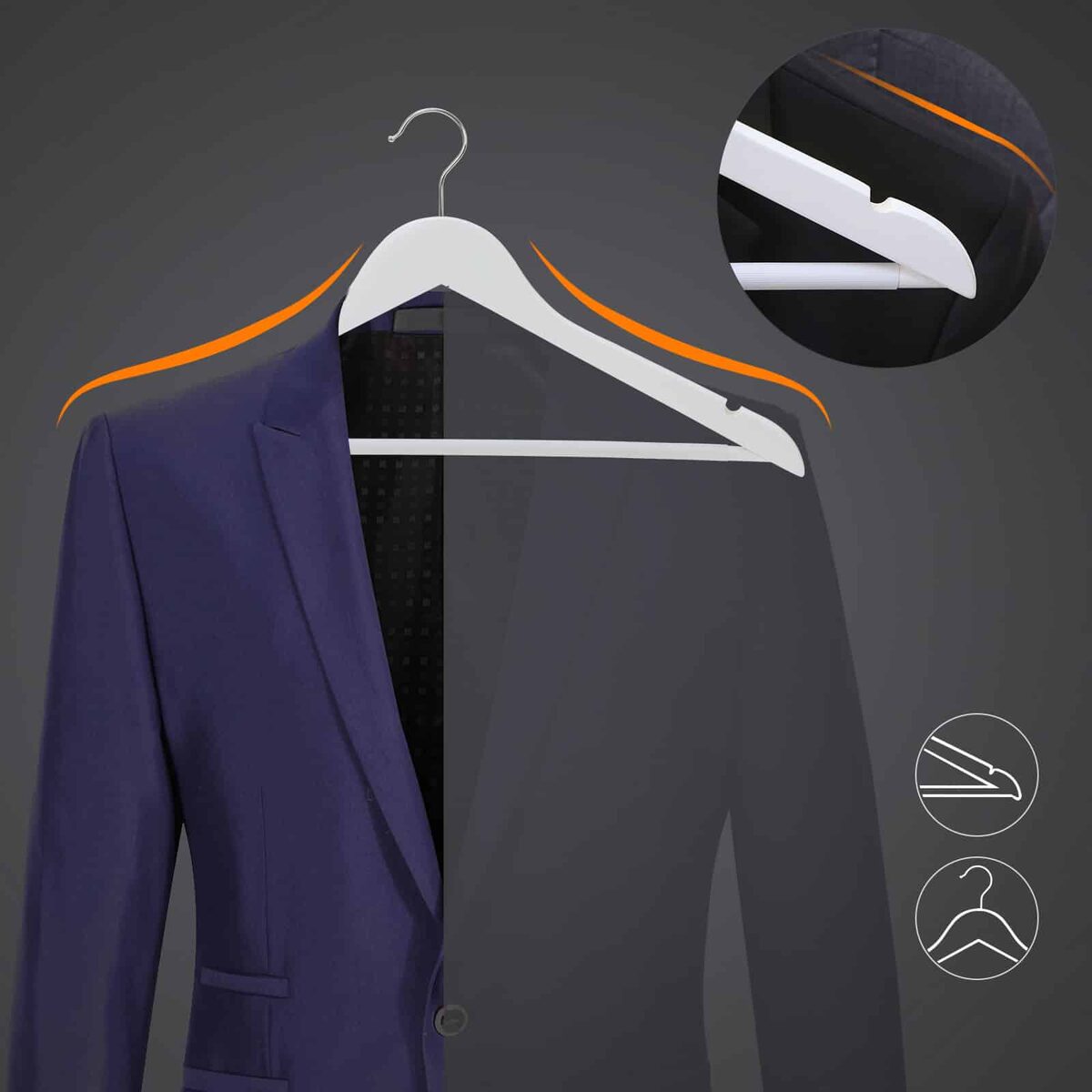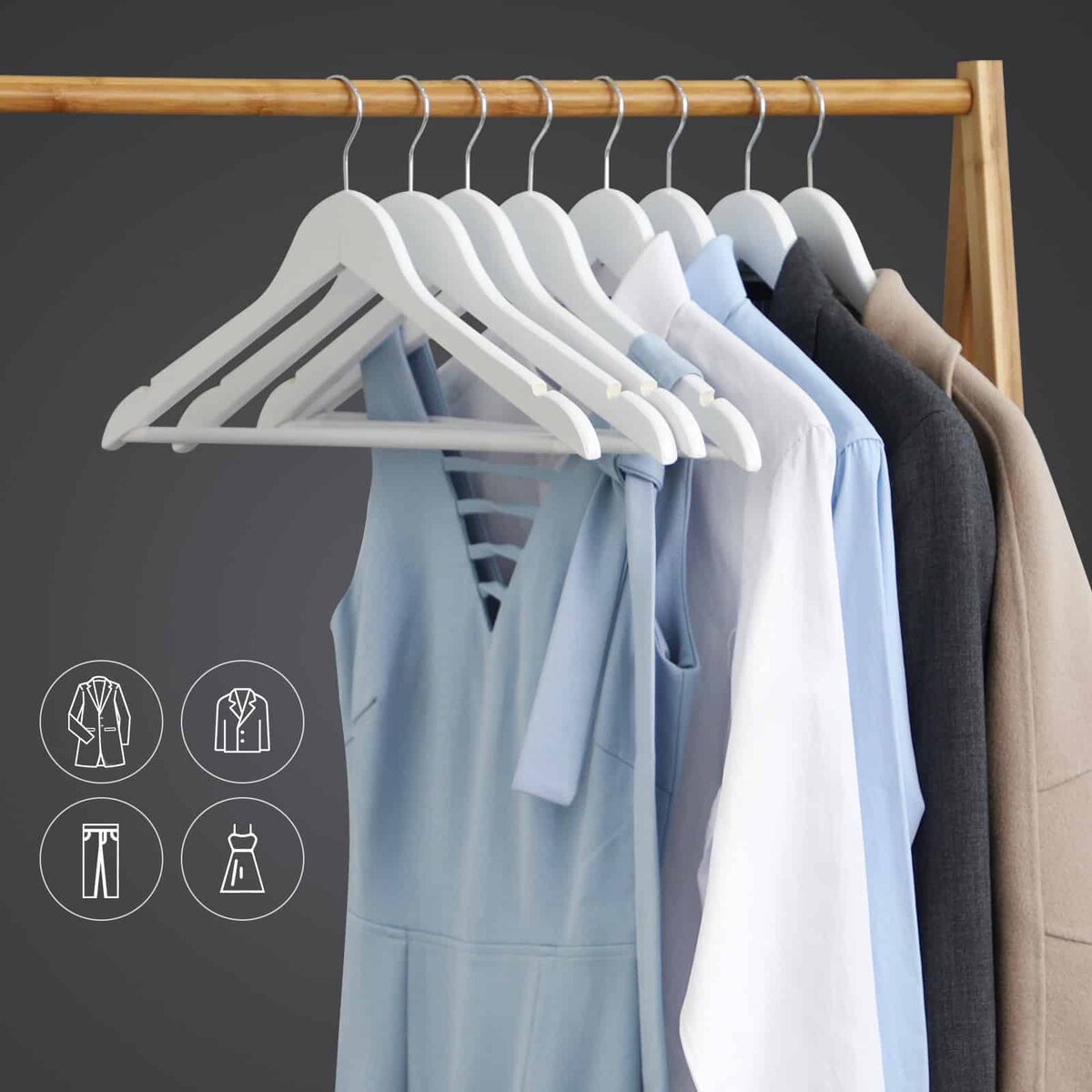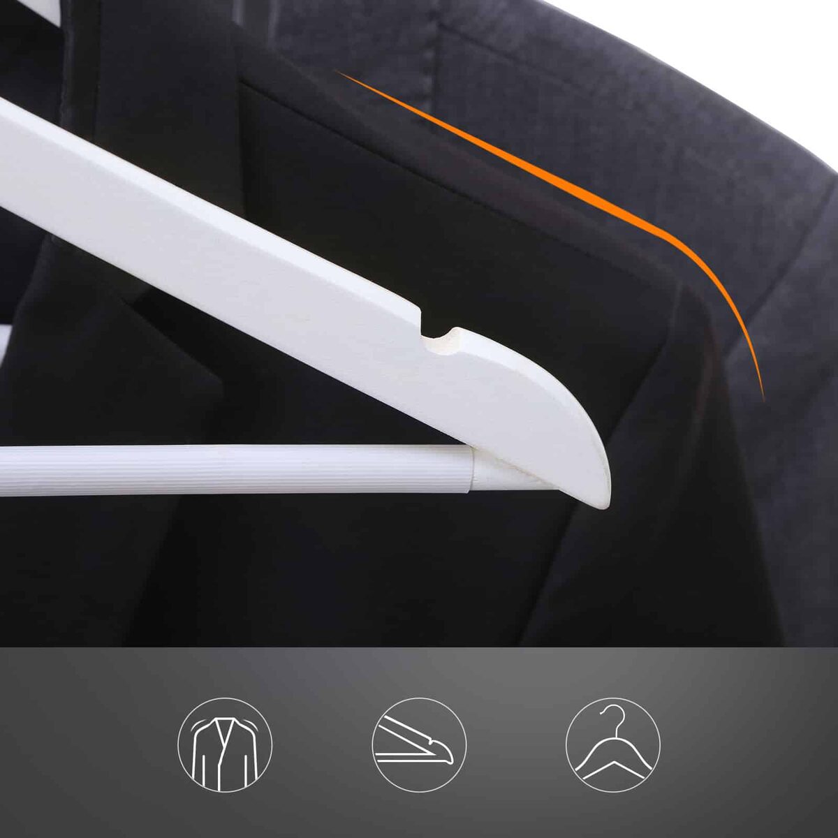 Ar jums sunku iš didelio įvairių pakabų pasirinkimo pasirinkti tinkamą modelį? Tada kodėl gi nepasirinkus klasikinio varianto iš medžio masyvo? Kartais mums reikia tik paprastų dizainų. Pagaminta iš klevo masyvo, poliruota ir lygia apdaila, šis SONGMICS rinkinys iš 30 baltų paltų pakabų yra ne tik ypač tvirtas ir patvarus, bet ir yra puikus fonas jūsų paltams, kostiumams, marškiniams, kelnėms, žieminėms striukėms ir džinsams.