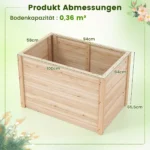 Pakelta lysvė 100x64x65,5 cm, šviesiai rudos spalvos, yra praktiškas sprendimas daržovių, gėlių ir kitų augalų auginimui. Dėl 65,5 cm gylio ir atviro dugno ši medinė lysvė užtikrina gerą dirvožemio oro cirkuliaciją bei drenažą, skatindama sveiką augalų šaknų vystymąsi. Lysvė pagaminta iš eglės medienos ir gali būti dažoma pagal pasirinkimą.