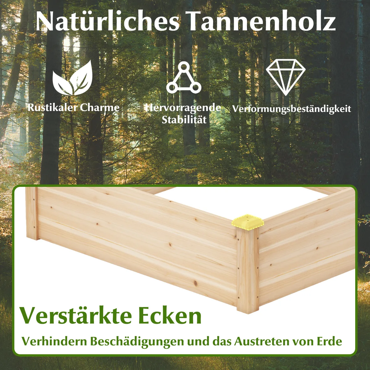 - Tvirta eglės medienos konstrukcija su sustiprintais kampais užtikrina formai atsparumą.