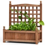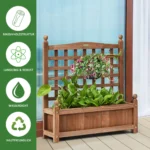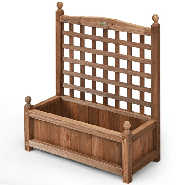 Pakelta lysvė 64,5x28x75 cm, rudos spalvos, puikiai tinka sodui, kiemui ar balkonui. Pagaminta iš natūralios pušies medienos, atspari oro sąlygoms ir skirta ilgalaikiam naudojimui lauke. Lysvė su grotelėmis suteikia patogią erdvę tiek gėlėms, tiek vijokliniams augalams.