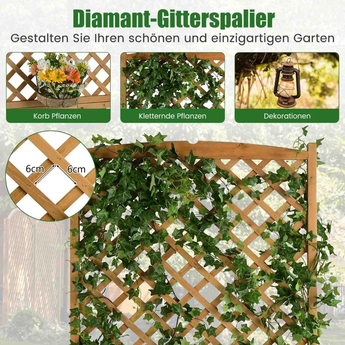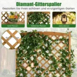 - Deimantinio rašto grotelių konstrukcija leidžia auginti vijoklinius augalus ir kabinti dekoracijas.