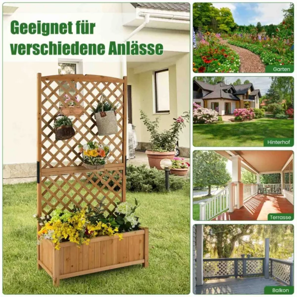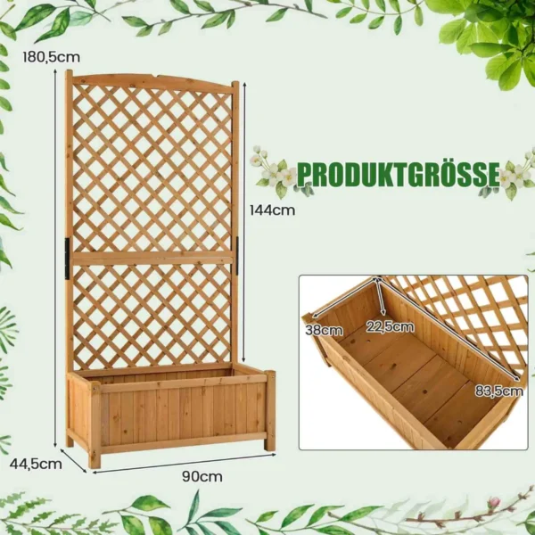 Pakelta lysvė 90×44,5×180,5 cm šviesiai rudos spalvos yra praktiškas sprendimas sodui ar terasai. Tinkama auginti daržoves, žoleles, gėles bei vijoklinius augalus, šis medinis sodinimo plotas užtikrina tinkamas auginimo sąlygas įvairiems augalams. Natūrali eglės mediena užtikrina ilgaamžiškumą ir atsparumą įvairioms oro sąlygoms.