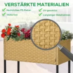 Tegul jūsų meilė sodininkystei žydi ištisus metus – su šiuo nuostabiu sodintuvu. Išorė pagaminta iš natūraliai atrodančio, tvirto plastikinio rotango ir laikosi tvirto metalinio rėmo. Taigi galite būti tikri, kad jūsų pakelta lova tarnaus ilgai net esant blogam orui ir ypač intensyviai naudojant. Mėgaukitės sodo džiaugsmu su šiuo puikiu sodintuvu, nepaisant oro ir sezono!