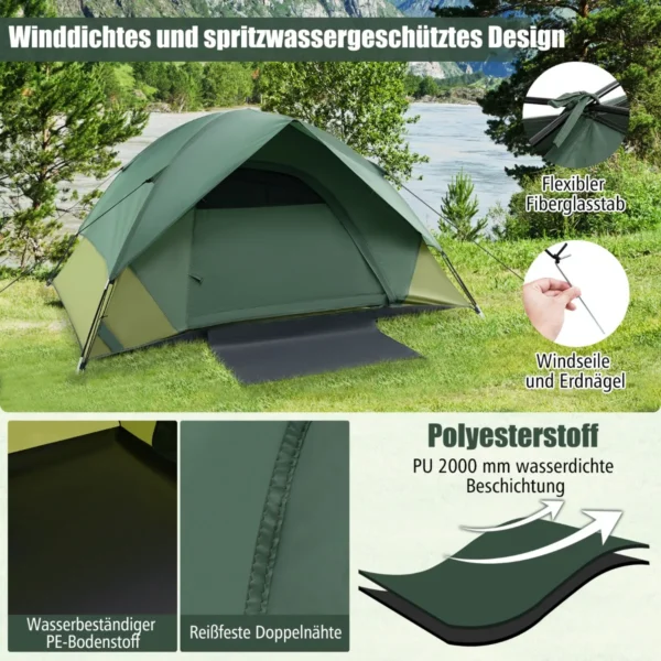 - Dviejų asmenų kupolinė palapinė, skirta lauko stovyklavimui ir žygiams.