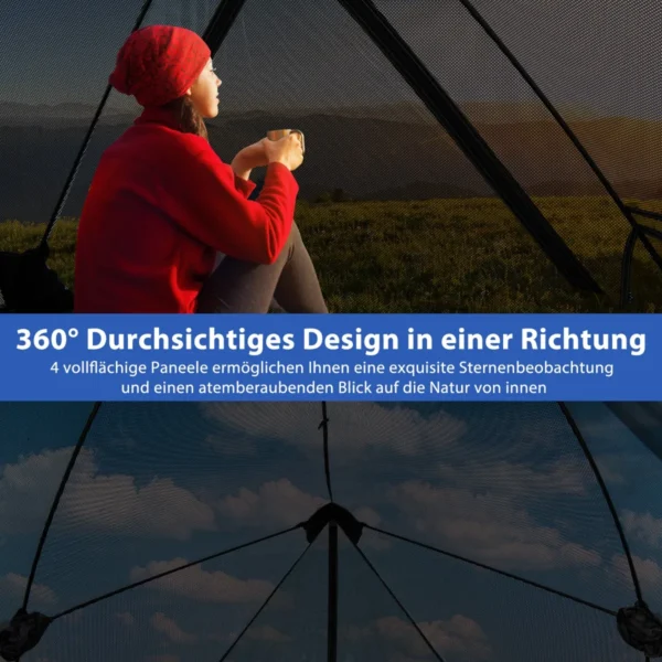 • 4 pilnos plokštės su 360° vienpusiais permatomais tinklais suteikia galimybę stebėti gamtą iš vidaus neprarandant privatumo.
