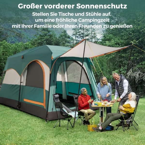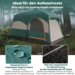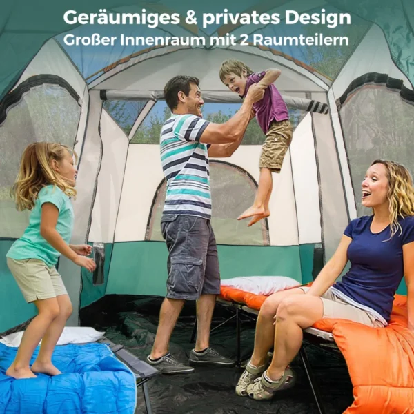 - Didelė 6 vietų palapinė su dviem atskirais kambariais ir pertvara.