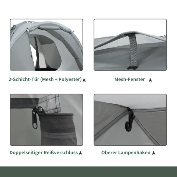 Peržiūrėkite šią šeimyninę palapinę iš Outsunny ir mėgaukitės lauke su maksimalia apsauga. Šioje kempingo palapinėje yra dvipusė išplečiama erdvė, kuri puikiai tinka 2-3 žmonėms. 3 tinkliniai langai tiekia gryną orą ir 4 durys su užtrauktuku, kad būtų lengva prieiti. 2 2 pakopų vidaus durys (tinklas + poliesteris) užtikrina vėdinimą arba privatumą. Kupolinę palapinę galima lengvai transportuoti nešiojimo krepšyje ir tai puikus priedas bet kokiai lauko pramogai.