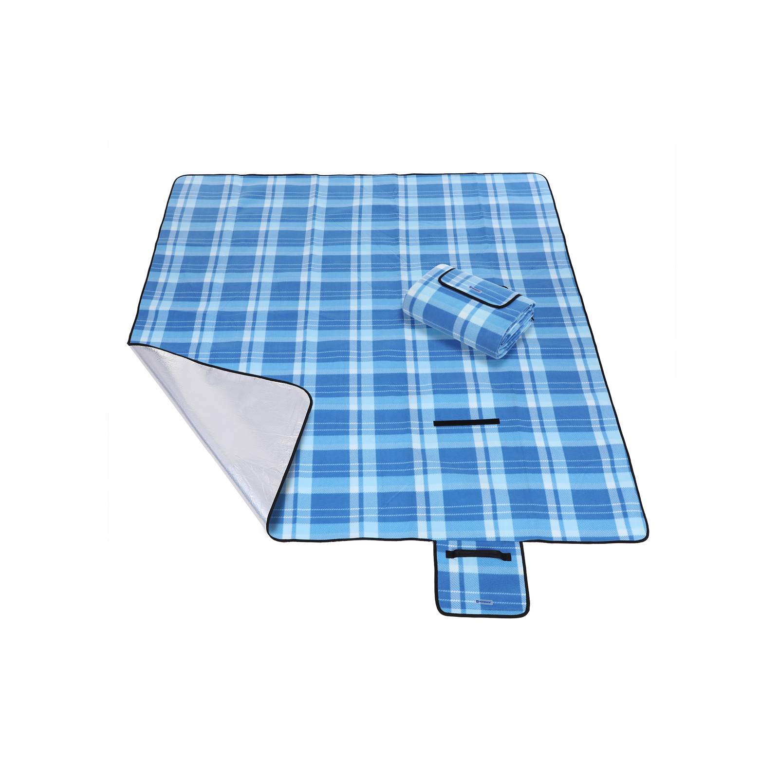 - 1 x Paplūdimio iškylų antklodė / pledas su izoliacija XXL dydžio, mėlyna/balta 200 x 200 cm