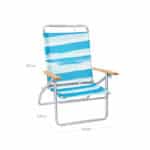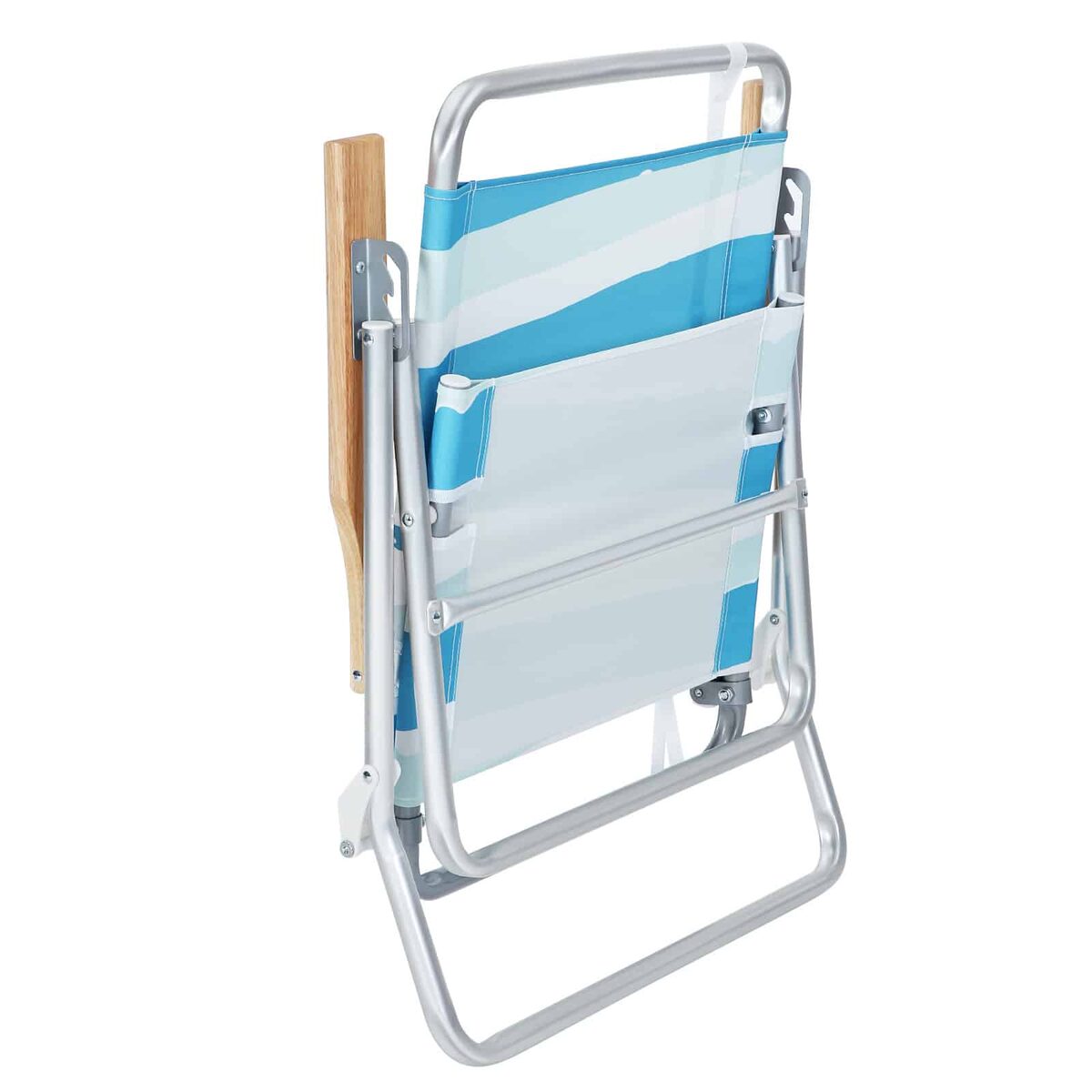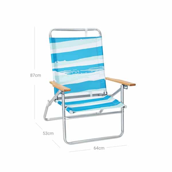 Paplūdimio kėdė su mėlynomis, žaliomis ir baltomis juostelėmis