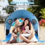 Paplūdimio palapinė 220x159x115cm, mėlynos spalvos, yra praktiškas sprendimas apsisaugoti nuo saulės ir lietaus lauke. Lengvai išsiskleidžianti ir kompaktiška, ji tinka paplūdimio išvykoms, stovyklavimui ar poilsiui gamtoje.