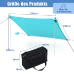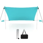 Paplūdimio pavėsinė 230x200x200cm, mėtinės spalvos – praktiškas ir nešiojamas sprendimas poilsiui gamtoje, paplūdimyje ar kieme. Ši lengva ir patvari pastogė apsaugo nuo tiesioginių saulės spindulių bei užtikrina stabilumą net vėjuotomis sąlygomis.