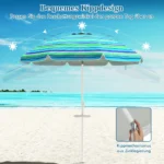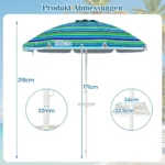 Paplūdimio skėtis 195x218m., įvairių spalvų, skirtas patogiai apsaugai nuo saulės lauke. Dėl reguliuojamo pasvirimo kampo ir tvirto plieno rėmo jis tinka naudoti paplūdimiuose, soduose ar terasose. Lengvas ir nešiojamas dizainas užtikrina patogų naudojimą ir transportavimą.
