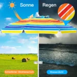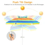 Paplūdimio skėtis 220×220 m yra praktiškas sprendimas norint apsisaugoti nuo saulės karštomis dienomis lauke. Skėtis puikiai tinka paplūdimiui, sodui ar kiemui, jį lengva nešioti ir montuoti. Reguliuojamas pasvirimo kampas užtikrina komfortą bet kokiomis sąlygomis.