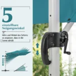 - Švaistiklio mechanizmas leidžia lengvai reguliuoti skėčio atidarymą, aukštį ir pasvirimo kampą.