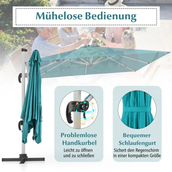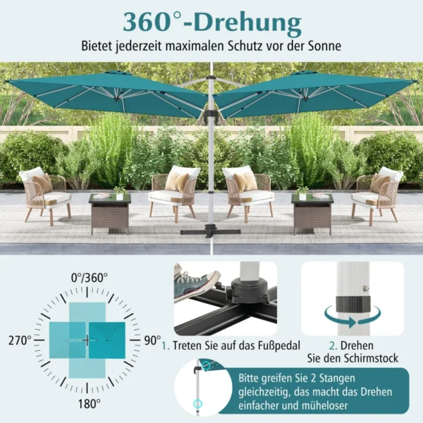 - 3 metrų skersmens suteikia didelį šešėlio plotą visomis kryptimis.