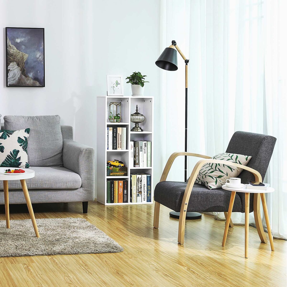 Ši knygų lentyna turi 3 didelius ir 4 mažus skyrius, kurie leidžia patogiai laikyti įvairius didelius ar mažus daiktus. Didžiausia lentynos statinė apkrova yra 10 kg, o L formos geležinė apsauga nuo apvirtimo užtikrina didesnį stabilumą.
