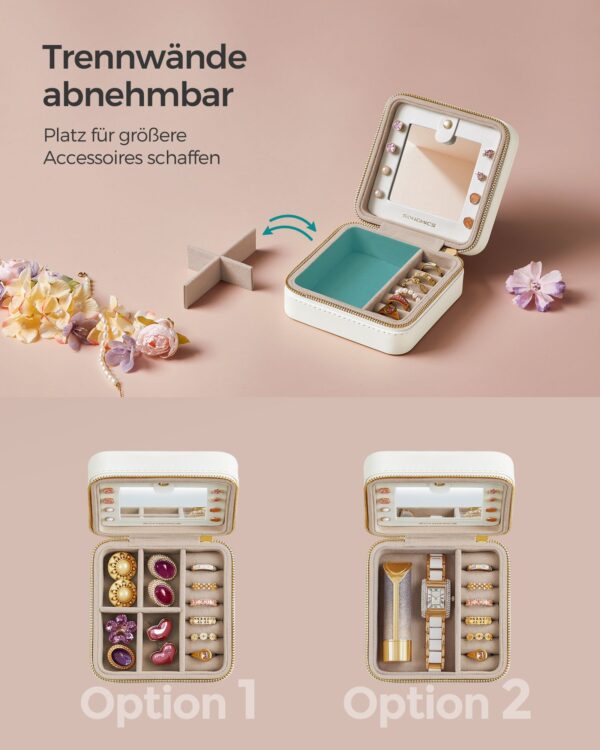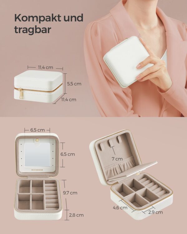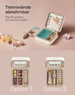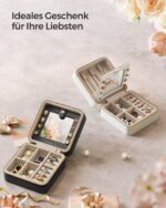 Ši subtili papuošalų dėžutė yra puikus pasirinkimas tiems, kurie vertina eleganciją ir funkcionalumą. Jos minimalistinis dizainas ir aukštos kokybės medžiagos užtikrina, kad jūsų brangiausi papuošalai bus saugiai laikomi ir lengvai pasiekiami.