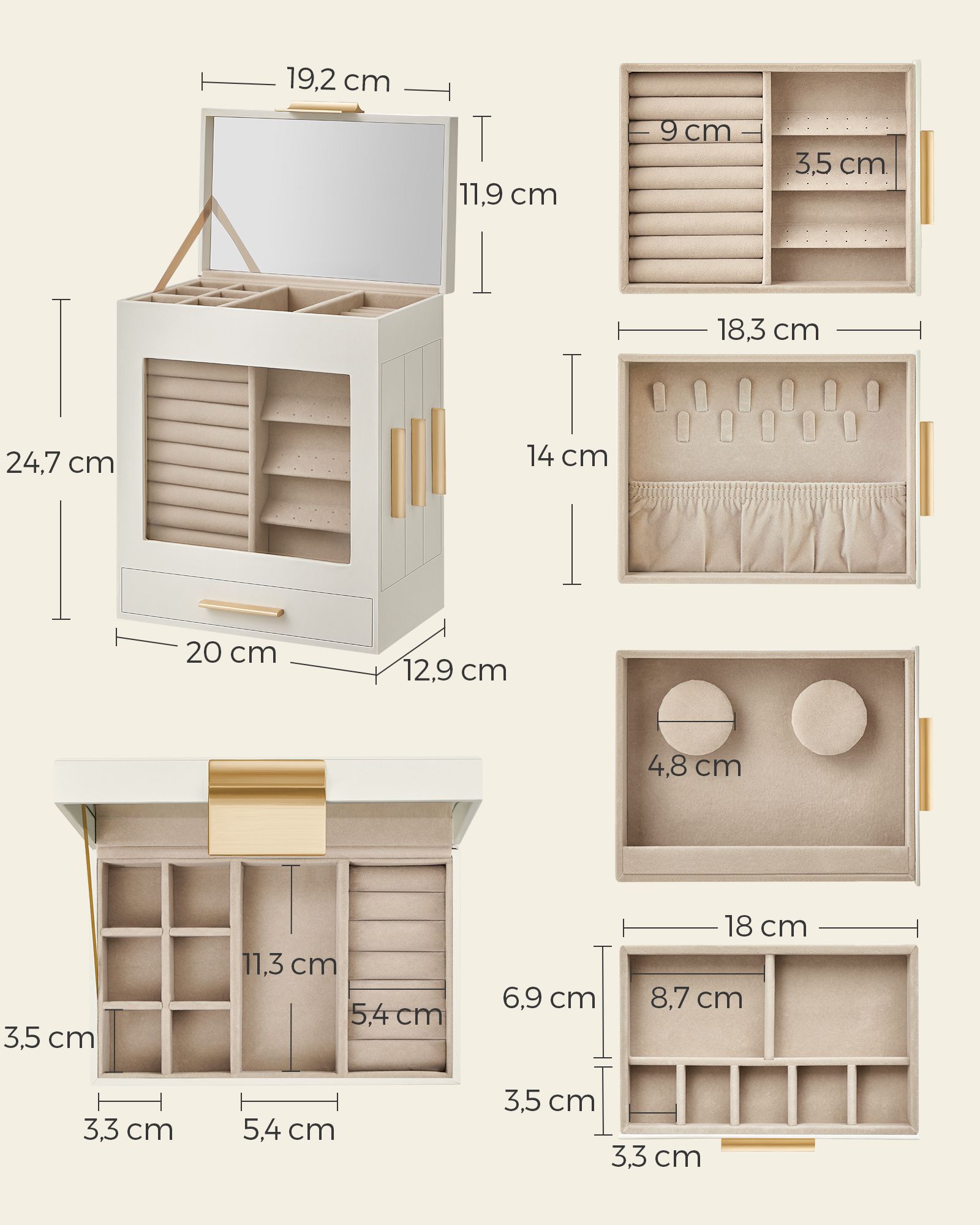 Papuošalų dėžutė 12,9x20x24,7cm., baltos/smėlio spalvos