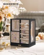 Ši elegantiška papuošalų dėžutė yra puikus sprendimas jūsų brangenybių ir aksesuarų laikymui. Baltos ir smėlio spalvos derinys suteikia subtilumo ir stiliaus jūsų interjerui.