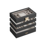 Ši elegantiška juodos spalvos papuošalų dėžutė yra puikus sprendimas jūsų brangenybių ir aksesuarų laikymui. Jos modernus dizainas ir aukštos kokybės medžiagos suteikia prabangos jūsų interjerui.