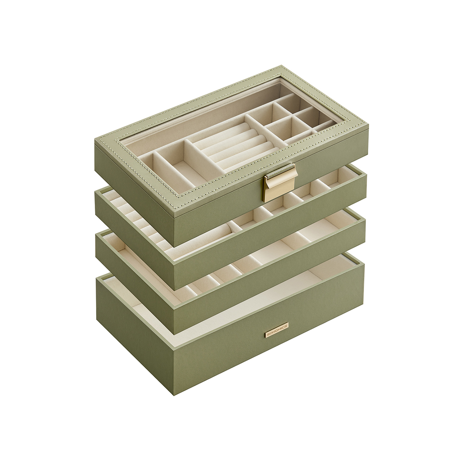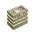 Ši elegantiška papuošalų dėžutė, kurios spalva yra lauro žalia, puikiai tiks jūsų papuošalų ir aksesuarų laikymui. Jos modernus dizainas ir aukštos kokybės medžiagos suteikia prabangos jūsų interjerui.