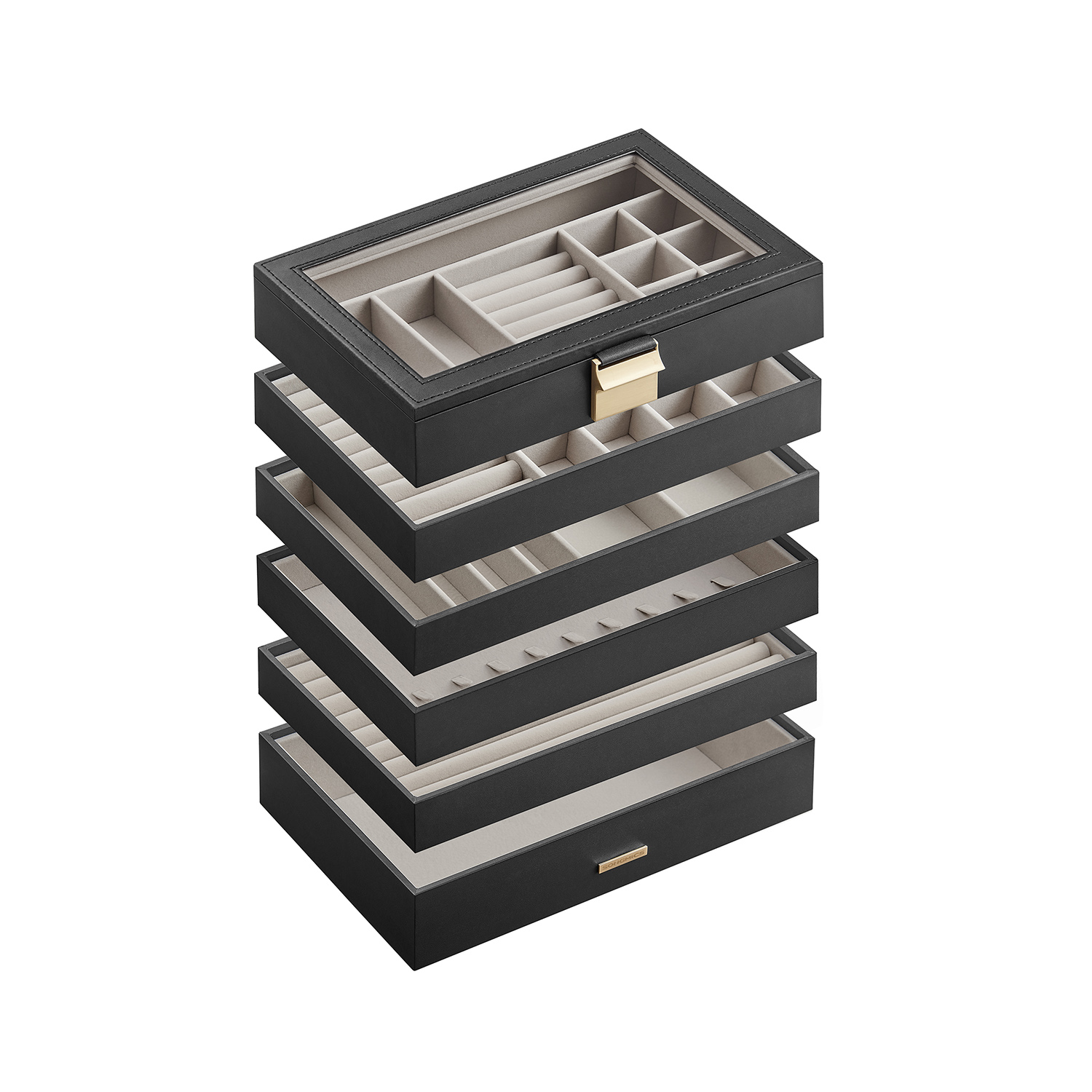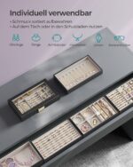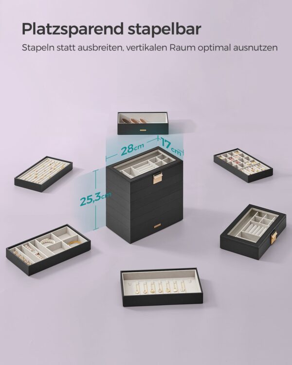 Ši elegantiška papuošalų dėžutė yra puikus sprendimas jūsų brangenybių ir aksesuarų laikymui. Juodos ir smėlio spalvos derinys suteikia prabangos ir stiliaus jūsų interjerui.