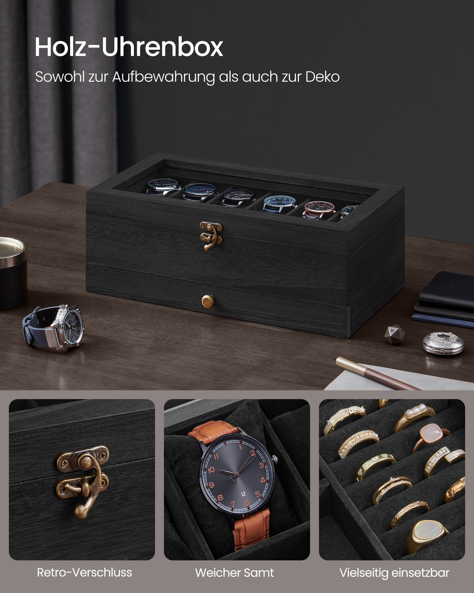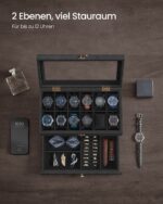 Ši elegantiška papuošalų dėžutė yra puikus sprendimas jūsų brangenybių ir aksesuarų laikymui. Juodos ir smėlio spalvos derinys suteikia prabangos ir stiliaus jūsų interjerui.