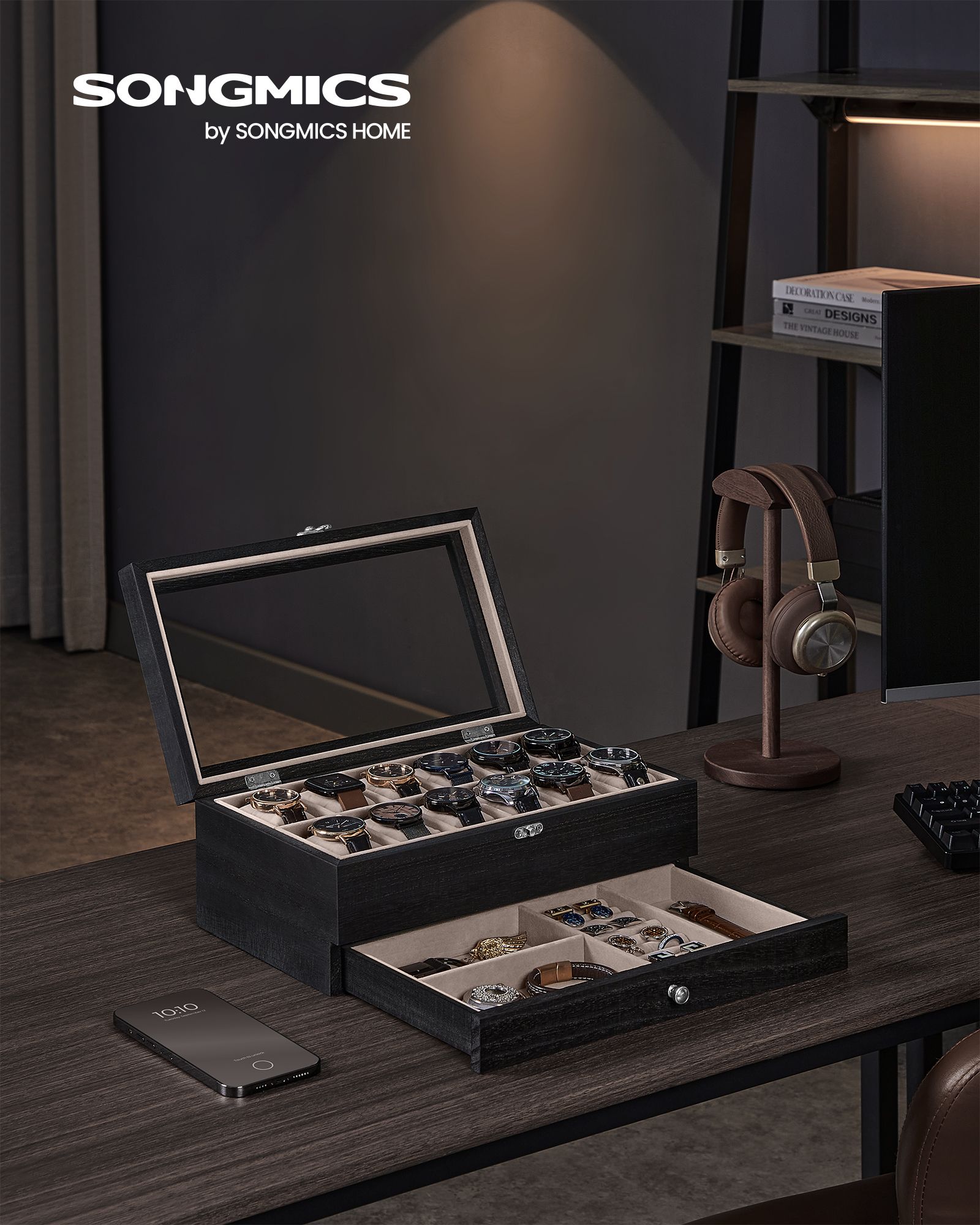 Ši elegantiška papuošalų dėžutė yra puikus pasirinkimas jūsų brangenybių saugojimui. Juodmedžio juoda spalva suteikia prabangos ir stiliaus jūsų interjerui.