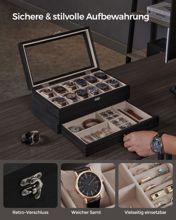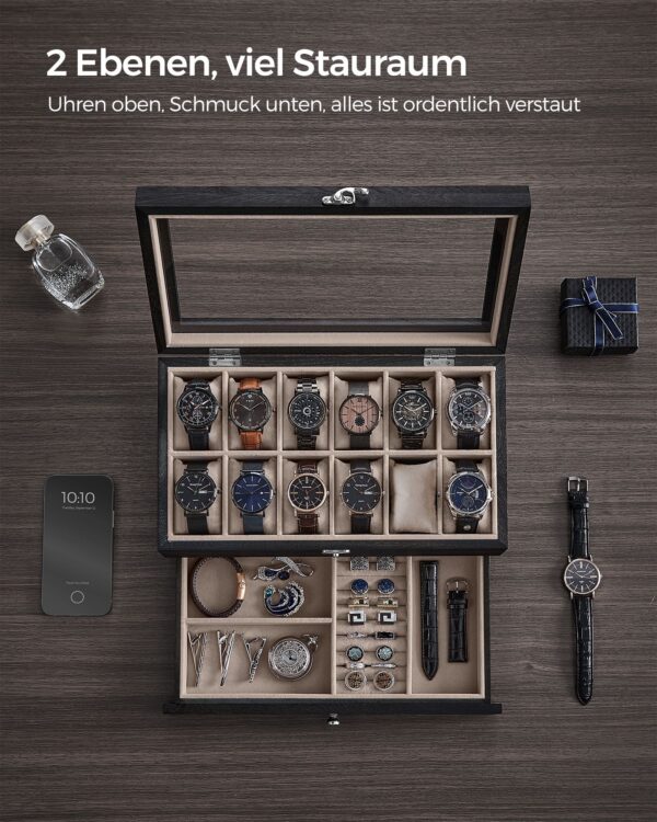 Ši papuošalų dėžutė ne tik apsaugo jūsų papuošalus, bet ir puikiai dera prie bet kokio interjero dizaino, suteikdama jam elegancijos ir rafinuotumo.