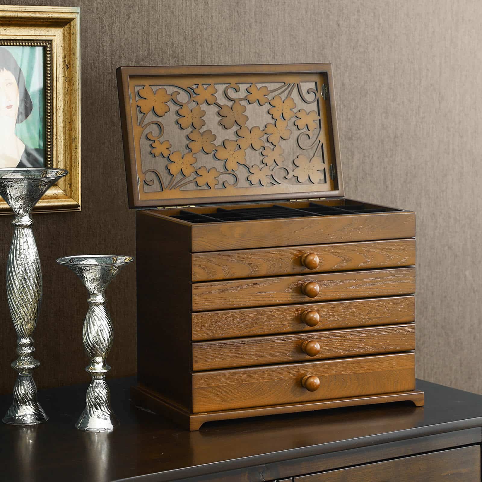 • Naudojimas: Puikiai tinka laikyti laikrodžius, karolius, auskarus ir kitus papuošalus.