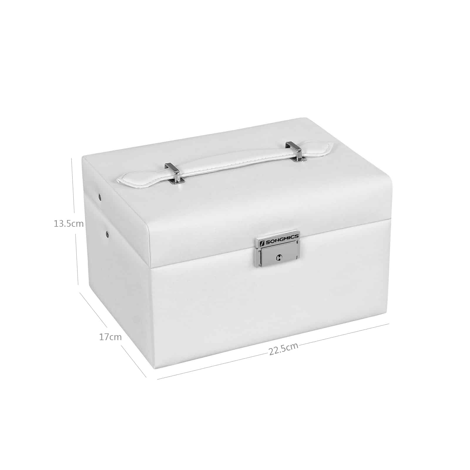 Graži, elegantiška ir nesenstanti papuošalų dėžutė – tikras akį traukiantis akcentas bet kuriame moderniame namų interjere. Šis kilnus papuošalų dėklas žavi ne tik elegantišku dizainu, bet ir funkcionalumu. Puikiai tinka laikyti laikrodžius, karolius, auskarus ir kitus papuošalus – net keliaujant. Jis taip pat apsaugo jūsų vertingus mėgstamus daiktus nuo dulkių ir įbrėžimų. Ši elegantiška Songmics papuošalų dėžutė yra lengvai prižiūrima ir būtina visiems papuošalų mylėtojams.