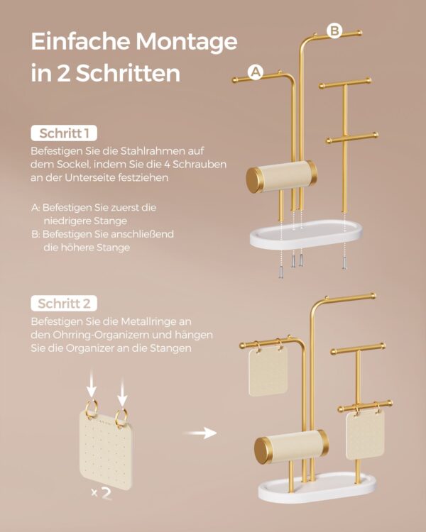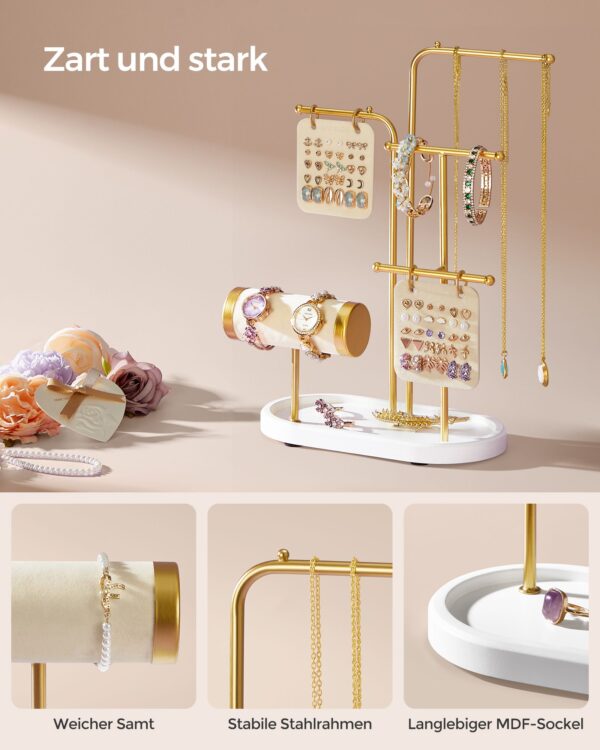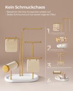 Šis papuošalų laikiklis yra ne tik praktiškas, bet ir stilingas sprendimas jūsų namams. Jo subtilus baltos ir auksinės spalvų derinys suteiks prabangos pojūtį, o tvirta konstrukcija užtikrins ilgalaikį naudojimą. Idealiai tinka tiek asmeniniam naudojimui, tiek kaip dovana artimiesiems.