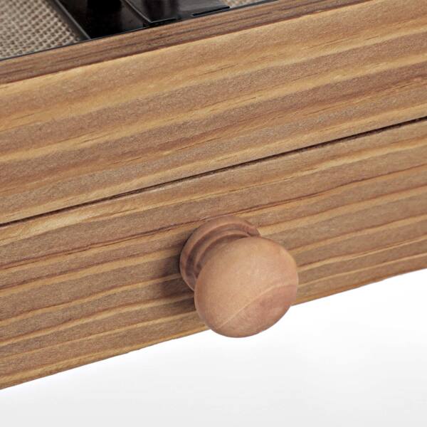 Geros medžiagos kalba pačios už save: viršutinėje dalyje esantys geležiniai strypai yra stabilūs ir tvirti, todėl jūsų lobiai tvirtai laikosi. Papuošalų dėžutė apatinėje dalyje pagaminta iš kokybiškos pušies medienos ir turi lininį pamušalą, kuris apsaugo jūsų papuošalus nuo subraižymo.