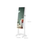 Puikiai suprojektuota papuošalų spintelė, balta JJC002W01, yra idealus sprendimas jūsų aksesuarams ir makiažui laikyti. Jūs jau išsirinkote savo aprangą, bet jai vis dar trūksta kažko? Tiesiog atidarykite šios papuošalų spintelės dureles ir suraskite tobulą apdailą savo išvaizdai! Auksiniai auskarai ir miela apyrankė su gėlėmis puikiai derėtų prie jūsų suknelės, ar ne? Sustokite! Nepamirškite, kad jūsų makiažas taip pat yra šioje papuošalų spintelėje. Papildykite savo išvaizdą tinkamais papuošalais ir makiažu, o tada grožėkitės rezultatu praktiškame viso ūgio veidrodyje!