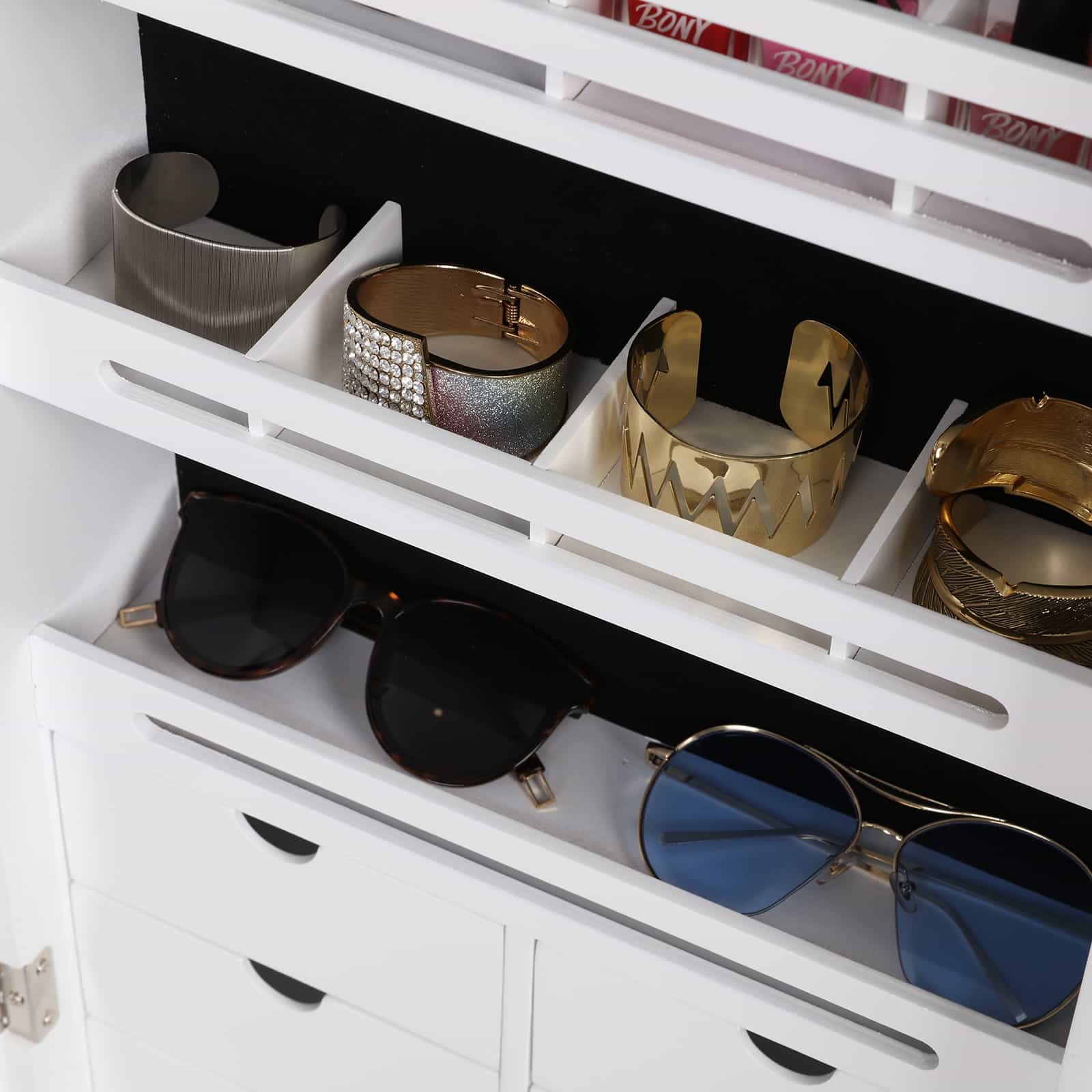 SONGMICS – papuošalų spintelių pramonės pradininkė. Pasirinkta medžiaga, puikus apdirbimas ir unikalus dizainas daro šią papuošalų spintelę geidžiamu produktu papuošalams laikyti.