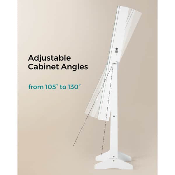 Spintelės dydis yra 36,5 x 46,5 x 154 cm ), o veidrodžio dydis – 108 x 37 cm . Svoris – 13,1 kg, todėl ji yra pakankamai tvirta ir stabiliai stovinti.