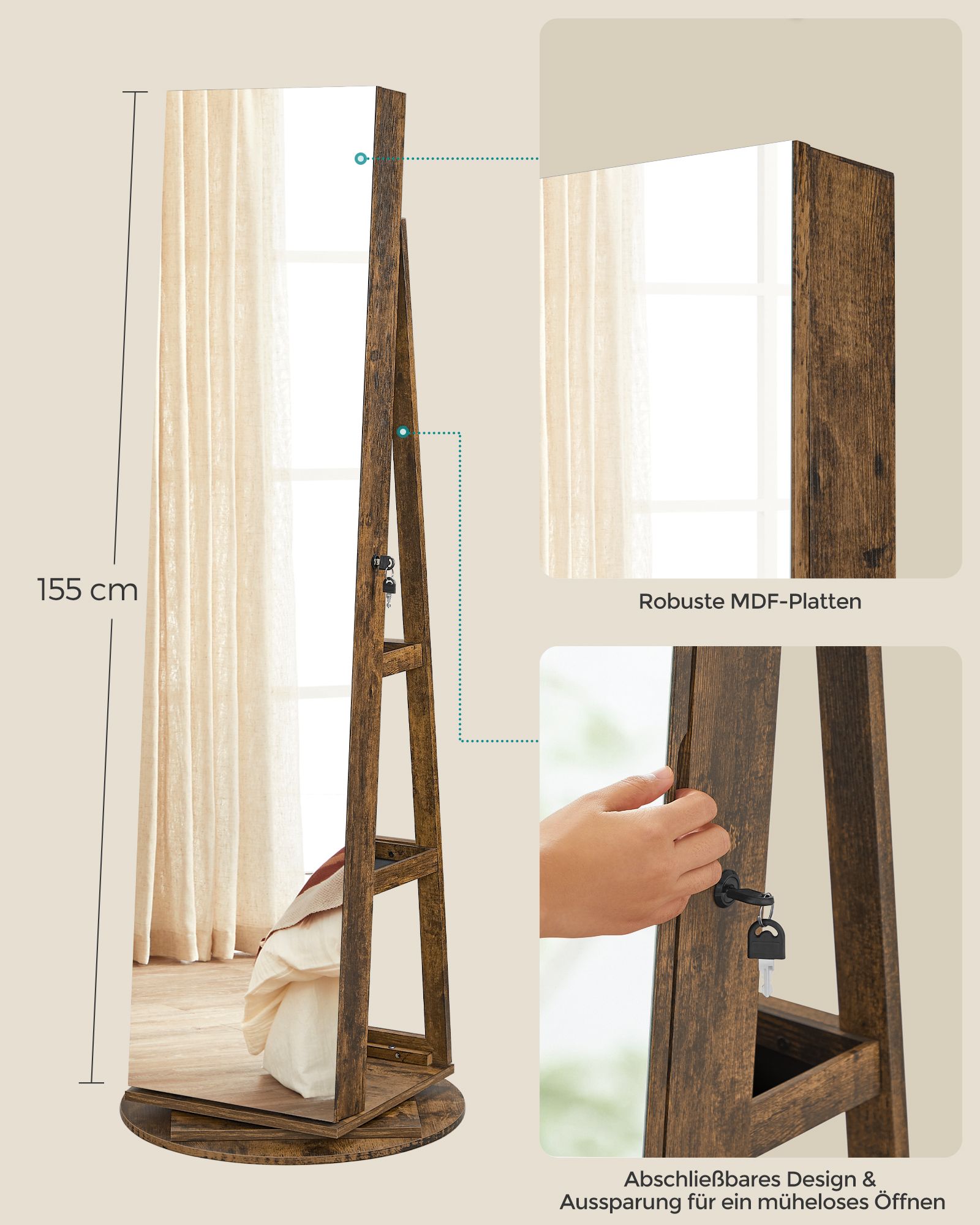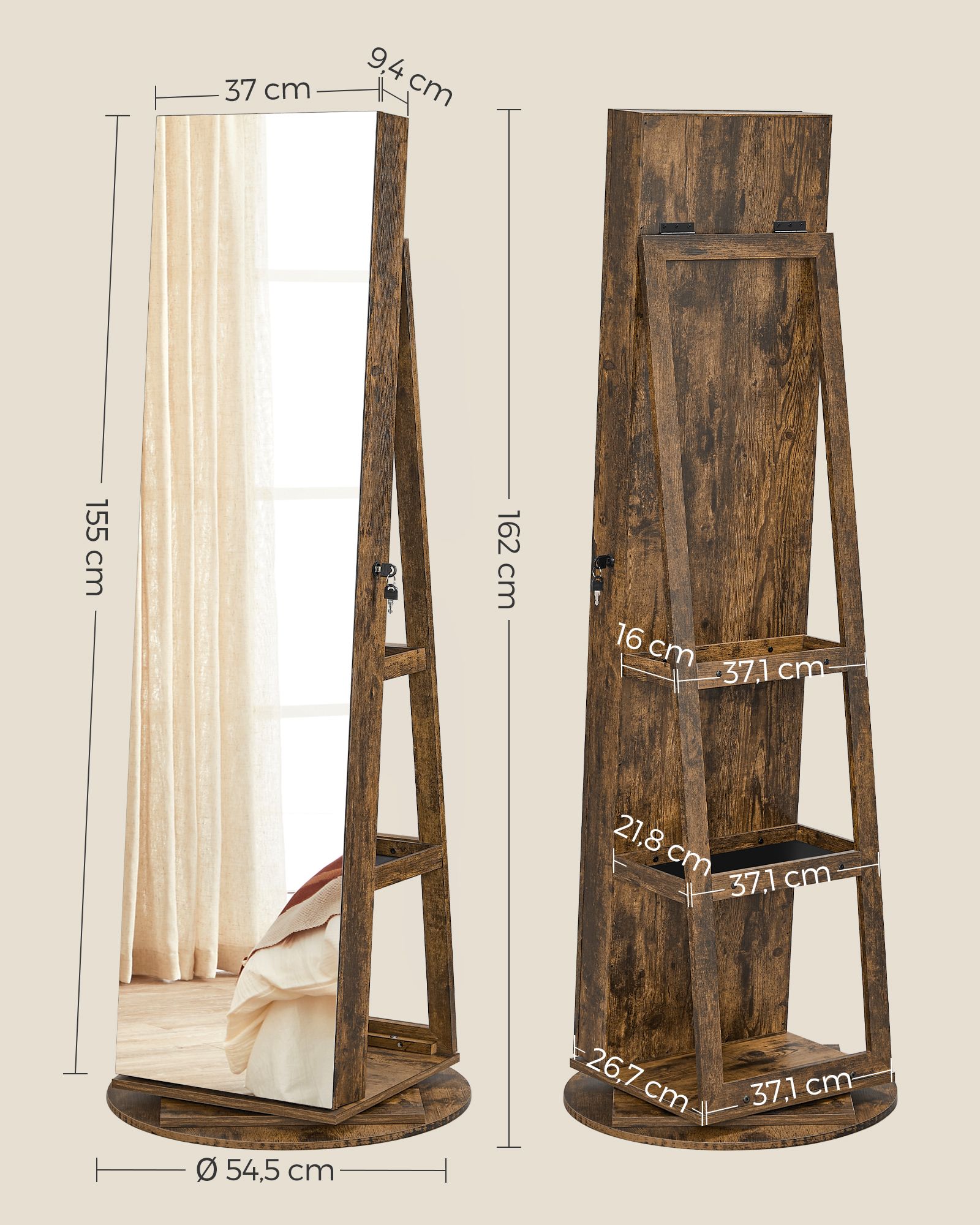 Papuošalų spintelė su veidrodžiu 37x162cm, rudos/juodos spalvos