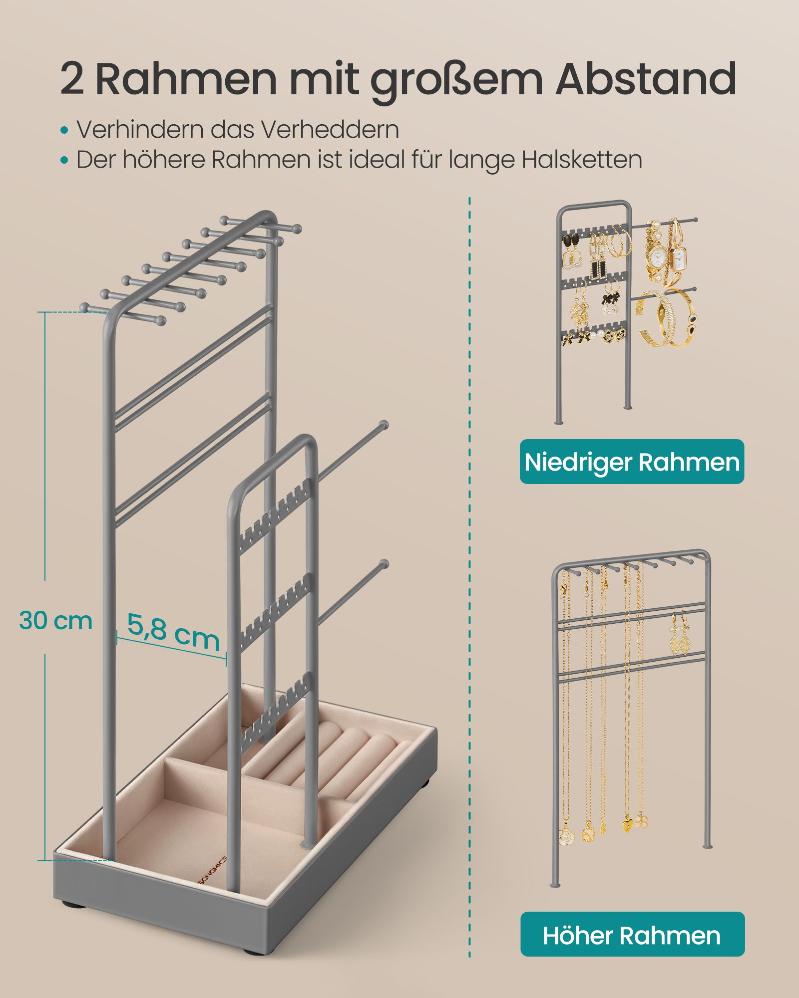 Papuošalų stovas 11,5×19,6×30,8cm., pilkos/kreminės spalvos