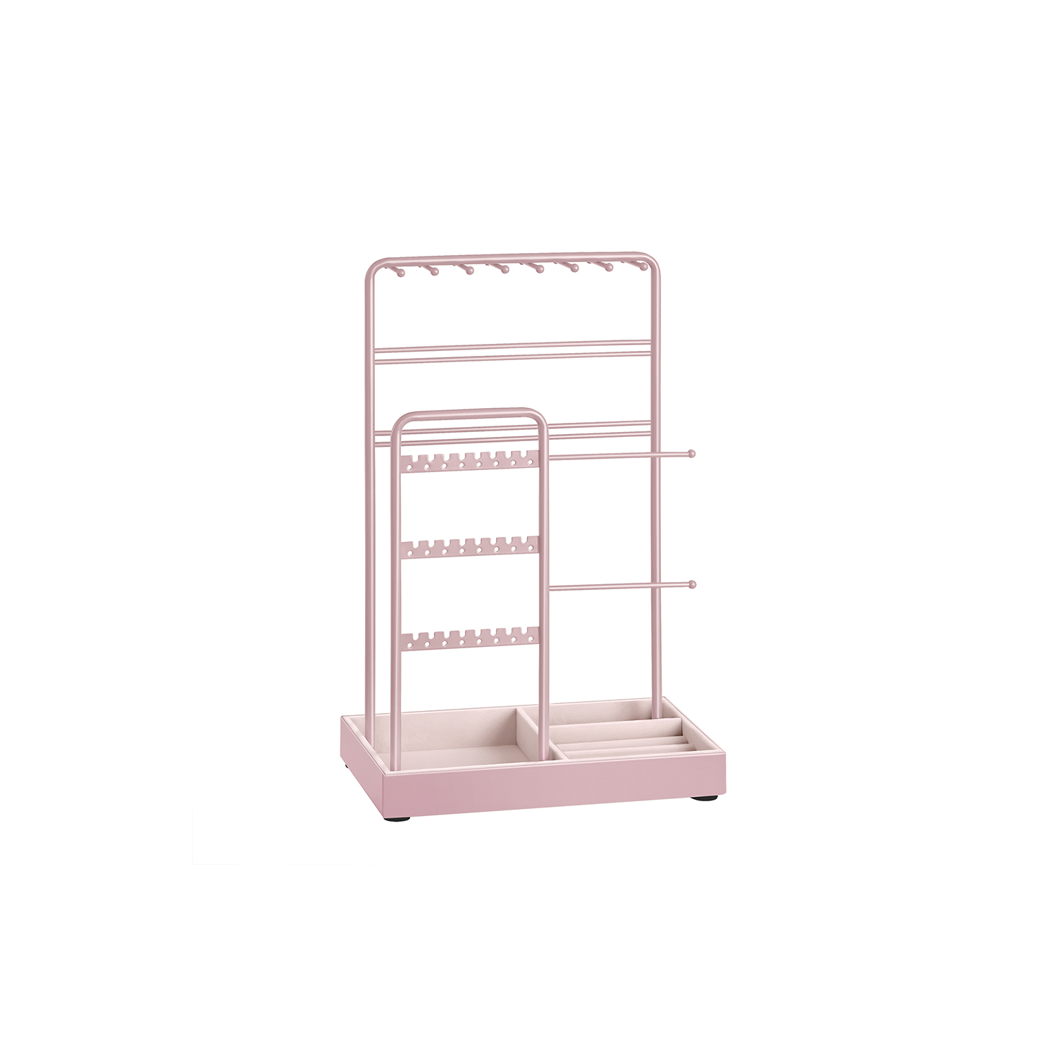 Šis elegantiškas papuošalų stovas yra puikus pasirinkimas jūsų aksesuarų organizavimui. Jo pastelinė rožinė spalva suteikia švelnumo ir stiliaus jūsų interjerui.
