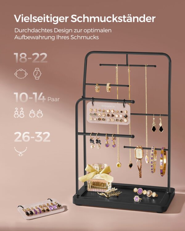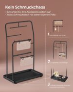 Šis elegantiškas papuošalų stovas yra puikus sprendimas jūsų papuošalų ir aksesuarų laikymui. Jo rašalo juoda spalva suteikia modernumo ir stiliaus jūsų interjerui.