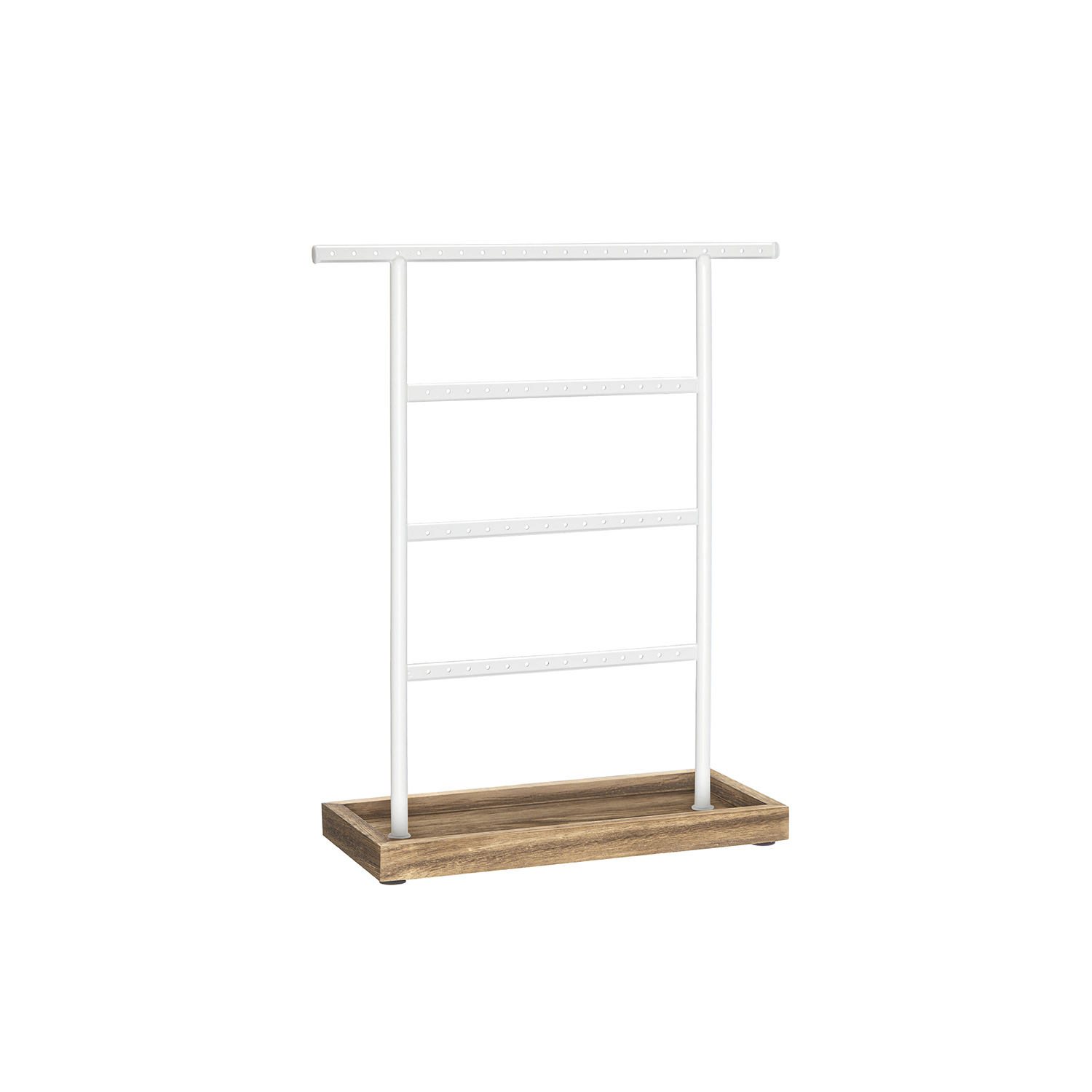 Šis papuošalų stovas yra puikus pasirinkimas jūsų aksesuarų organizavimui. Jo šviesiai ruda ir juoda spalva suteikia elegancijos ir stiliaus jūsų interjerui.