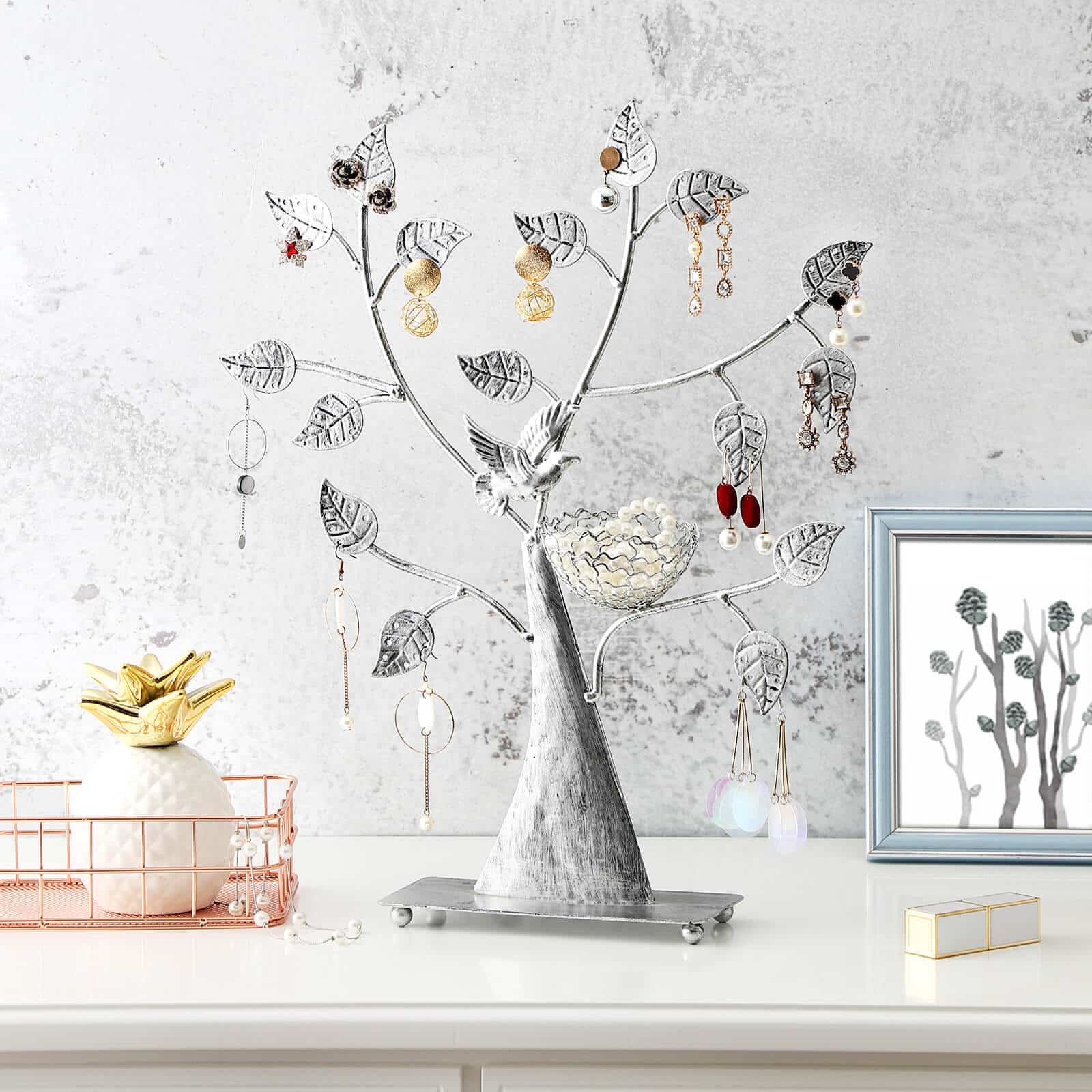 Dėl plataus pagrindo stovas yra stabilus ir neapvirsta. Papuošalų medis yra labai funkcionalus ir tuo pačiu vizualinis akcentas.