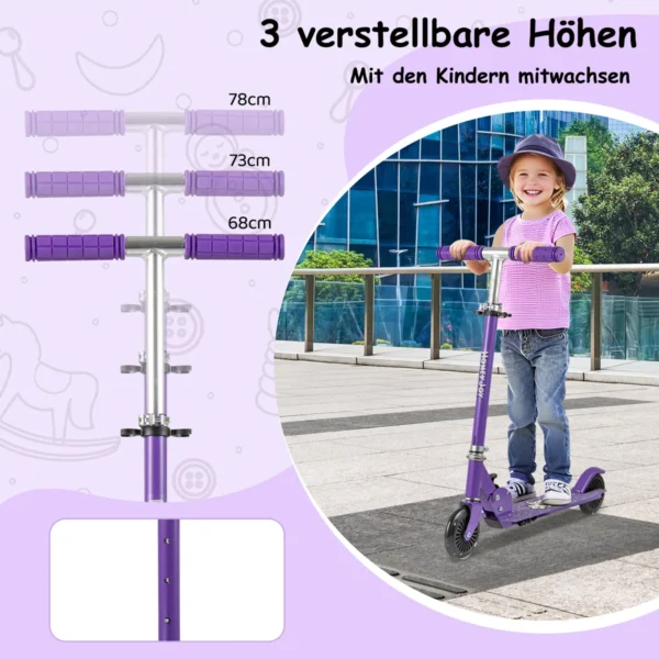 - Vaikiškas paspirtukas su 3 lygių reguliuojamu vairu (68/73/78 cm), pritaikytas augančiam vaikui.