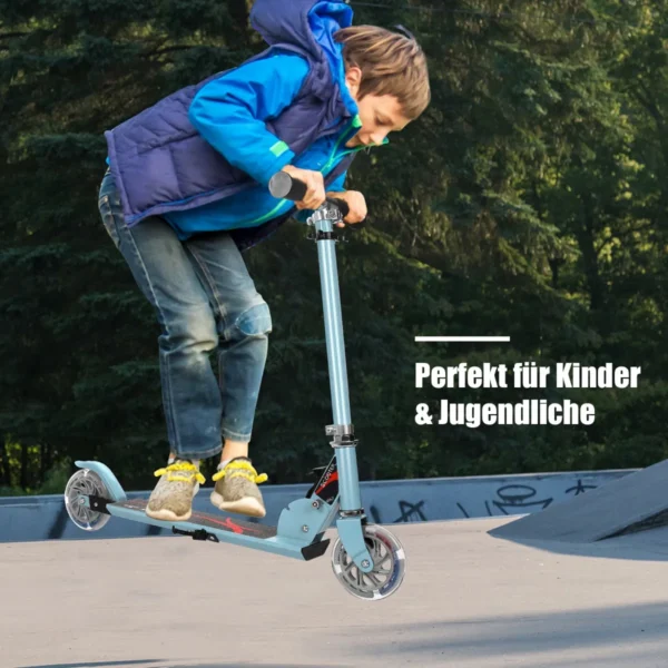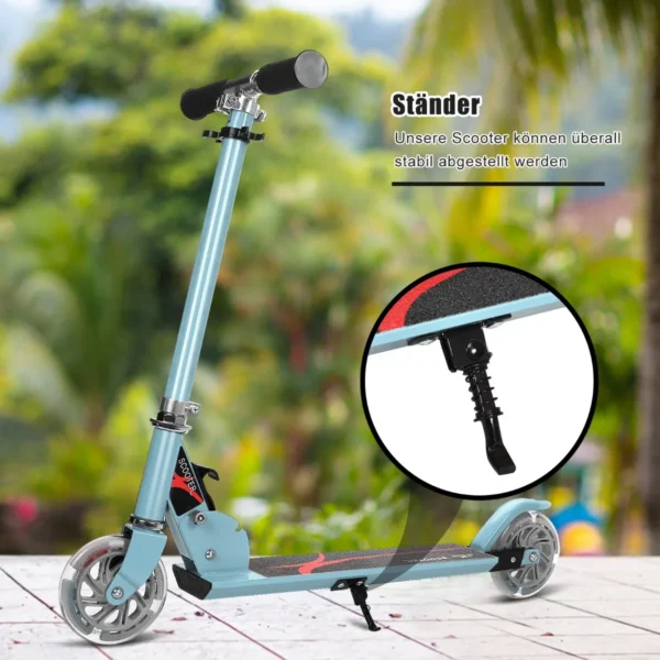Paspirtukas 70x10x87cm, mėlynos spalvos, skirtas vaikams nuo 4 iki 13 metų. Reguliuojamo aukščio vairas ir mirksintys ratai suteikia komfortą bei saugumą ruošiantis važiuoti įvairiomis sąlygomis. Aliuminio konstrukcija užtikrina ilgaamžiškumą ir patikimumą.