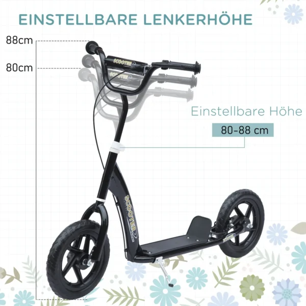 Paspirtukas visai šeimai. Ne tik vaikams, bet ir broliams ir seserims, tėvams ir draugams. Šis paspirtukas idealiai tinka trumpam pasivažinėjimui į mokyklą ar darbą. Dėl 12 colių ratlankių ir EVA padangų paspirtukas greitai slysta. Dėl stovo galite lengvai pastatyti paspirtuką jo negulėdami. Šis HOMCOM paspirtukas siūlo daug vairavimo pramogų visai šeimai!