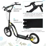 Šis HOMCOM paspirtukas siūlo aukščiausio lygio vairavimo malonumą! Pripučiamos padangos užtikrina sklandų važiavimą. Dviguba stabdžių sistema palengvina stabdymą. Dėl lengvo svorio jį lengva transportuoti, kai jis nenaudojamas. Su šiuo HOMCOM paspirtuku jūsų vaikams patiks daugiau laiko praleisti lauke.